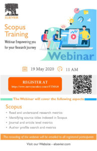 Scopus Training : Empowering You for Your Research Journey (Part 2) by Liza Porijo | May 14, 2020 | Uncategorized Date : 19 May 2020 (Tuesday) Time : 11.00am – 12.00pm Register at : https://www.surveymonkey.com/r/UTMS20