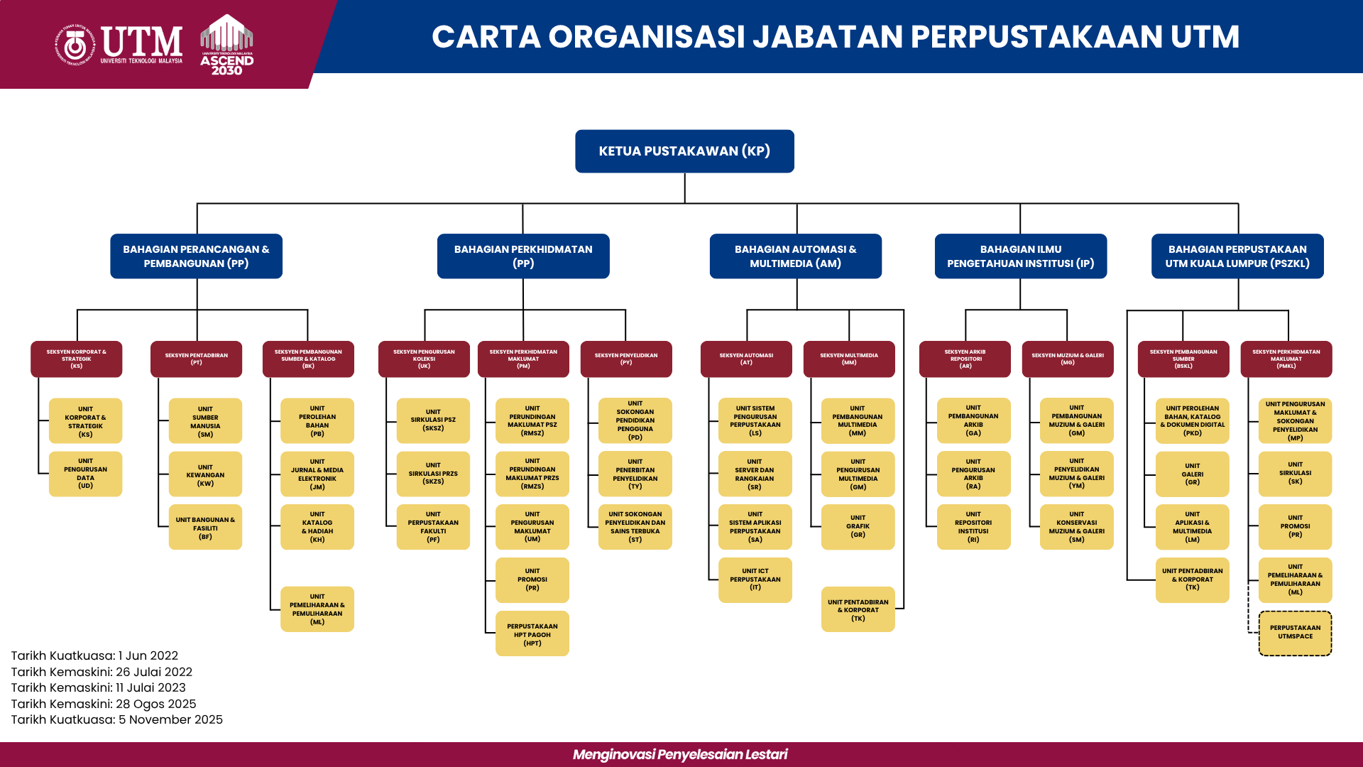 Home About Us Organisation Chart Management and Professional Staff Vision, Mission & Goals Client Charter UTM ASCEND 2030 Chief Librarians Sections Branches Awards & Recognitions Library Quality System Facts and Figures Library Publications UTM Library CSR Programme Membership Library Rules and Etiquette Library Membership Membership Categories Services Borrowing, Returning, Reserving & Renewing Loan Periods & Fines Opening Hours Librarian by Appointment Interlibrary Loan User Education Program UTM MOOC – Library Skills Theses Reference Library Area Facilities Liaison Librarians Friends of UTM Library Collections Open & Closed Access Collections Reference Materials Journals Collection UTM Special Collection Maps / Aerial Photographs Purchase Suggestion E-Resources Online Databases, e-Journals & e-Books : A-Z Listing UTM Open Science UTM Open e-Journals Open Access Initiatives UTM Institutional Repository MyUniNet Portal Library Resources for Open Distance Learners Research Research Support Platform RADIS : Publication Module UTM Senate SDI Research Canvas Competition 2023 UTM Top Scientists Fellows of the Academy of Sciences Malaysia (ASM) Top Research Scientists Malaysia (TRSM) World’s Top 2% Scientists 2023 2022 2021 Contact Us FAQs organisation chart Click here to enlarge UTM LIBRARY SECTIONS