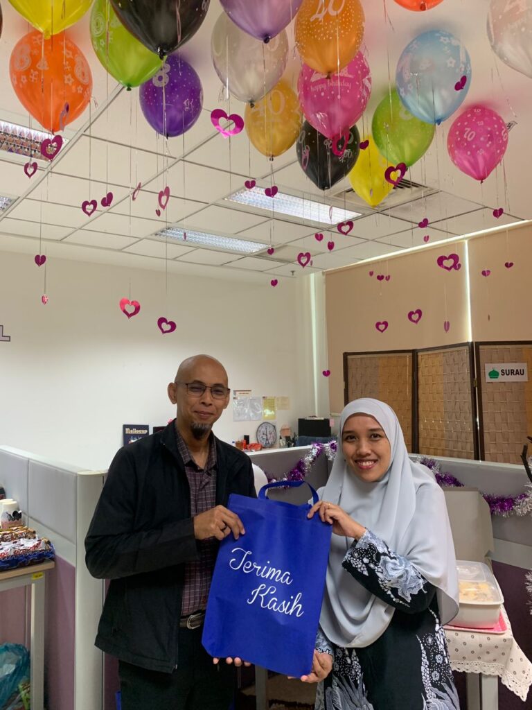 Aktiviti Kesejahteraan Staf terakhir bagi tahun 2023 telah diadakan pada 21.12.2023 bagi meraikan hari kelahiran staf bagi sesi Julai & Disember. Staf yang diraikan adalah En. Fahmi Moksen dan Cik Nurnisa Sabrina Mohd. Muhadir.