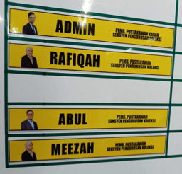 Design baru nama-nama staf beserta gambar dan jawatan dicetak, digunting dan di laminate.