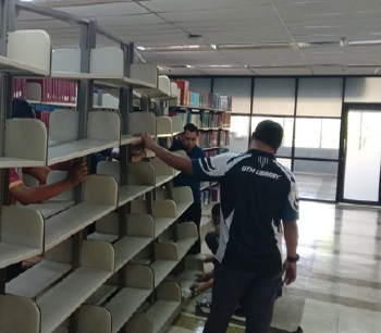 Projek pemindahan rak ini dijalankan pada 28 dan 29hb Julai 2025 di aras 2 bagi menaik taraf aras 2 kepada Muzium Warisan UTM. Seramai 13 orang staf lelaki perpustakaan dilantik untuk melaksanakan projek ini diketuai oleh Penyelaras Projek, En Syafiq dan Pembantu penyelaras, En Azhar.