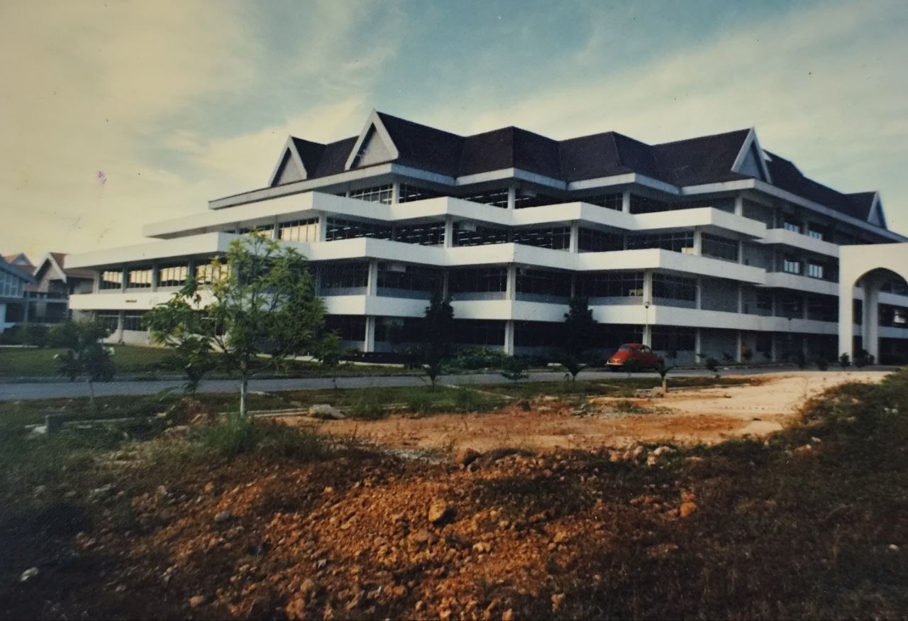 Bangunan perpustakaan kampus Kuala Lumpur dalam pembinaan pada tahun 1980