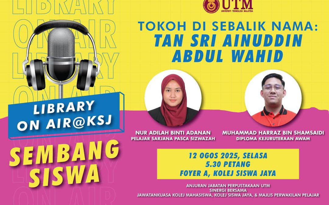 Kuala Lumpur, 7 Oktober 2025 – Jabatan Perpustakaan UTM Kuala Lumpur dengan kerjasama Jawatankuasa Kolej Mahasiswa (JKM KSJ) serta Majlis Perwakilan Pelajar (MPP) telah berjaya menganjurkan satu lagi siri program Library on Air@KSJ: Sembang Siswa yang telah diadakan di Kolej Siswa Jaya (KSJ), UTM Kuala Lumpur. Selepas sambutan yang menggalakkan untuk siri yang pertama pada bulan Ogos yang lalu, Siri kedua kali ini tampil dengan bahan bacaan yang berbeza dan menarik.