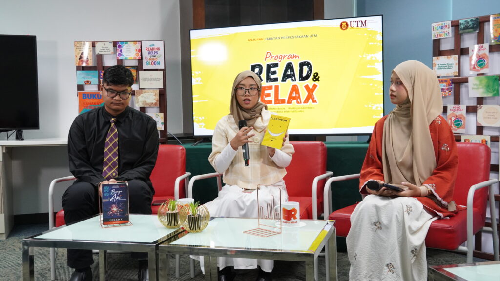 Pada 4 September 2025 (Khamis), Jabatan Perpustakaan Universiti Teknologi Malaysia (UTM) telah menganjurkan Program Read & Relax Siri 5/2025, yang telah disiarkan secara langsung melalui platform rasmi Facebook dan YouTube Perpustakaan UTM. Program ini telah berlangsung dari jam 11.00 pagi hingga 12.00 tengah hari. Bagi siri kali ini, dua orang panel pengulas jemputan telah dijemput bagi menyampaikan ulasan karya pilihan masing-masing. Saudari Fatin Nabilah binti Farul Azhan telah membentangkan ulasan berkenaan komik Assassination Classroom, manakala Saudara Khairul Naqiu bin Ismail telah mengulas novel bertajuk Bunga Api, karya Orked V. Kedua-dua panel jemputan merupakan pelajar sangkutan daripada Fakulti Sains Maklumat, Universiti Teknologi MARA (UiTM), Cawangan Merbok. Sesi ini telah dikendalikan oleh moderator, Saudari Badrieyna binti Badiuddahri, yang juga merupakan pelajar sangkutan dari fakulti dan institusi yang sama.