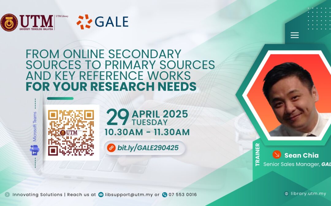 For more information about upcoming training sessions and library resources, please contact libsupport@utm.my or visit library.utm.my.