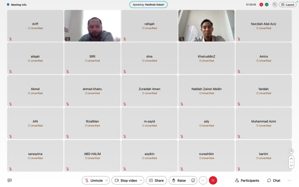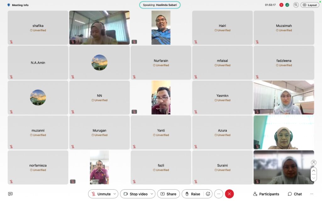 Sesi Townhall ini telah diakhiri dengan ucapan penutup oleh Ketua Pustakawan Perpustakaan UTM, Puan Khairulbahiyah binti Yaakub. Beliau merakamkan ucapan tahniah kepada semua warga perpustakaan atas komitmen dan usaha berterusan dalam menjayakan pelan tindakan tahun 2025. Beliau menekankan bahawa setiap inisiatif yang dijalankan memberi impak langsung kepada komuniti kampus melalui perkhidmatan yang bukan sahaja menyokong pembelajaran, tetapi turut memperkaya pengalaman pengguna. Pendekatan berasaskan data pengguna turut ditekankan sebagai asas penting dalam memperkukuh ekosistem perkhidmatan perpustakaan agar lebih relevan dan responsif terhadap keperluan semasa.