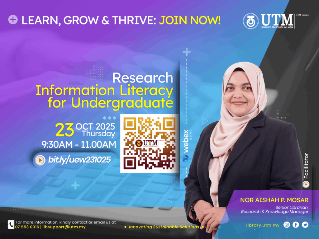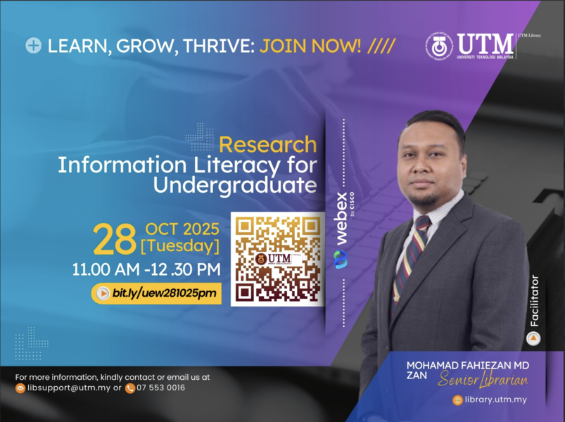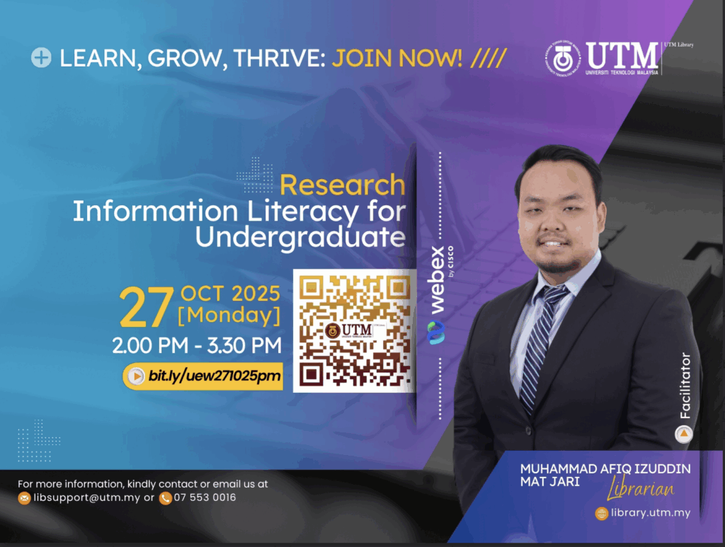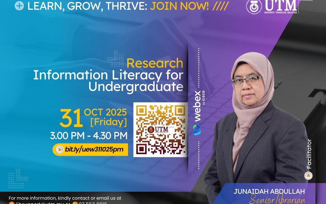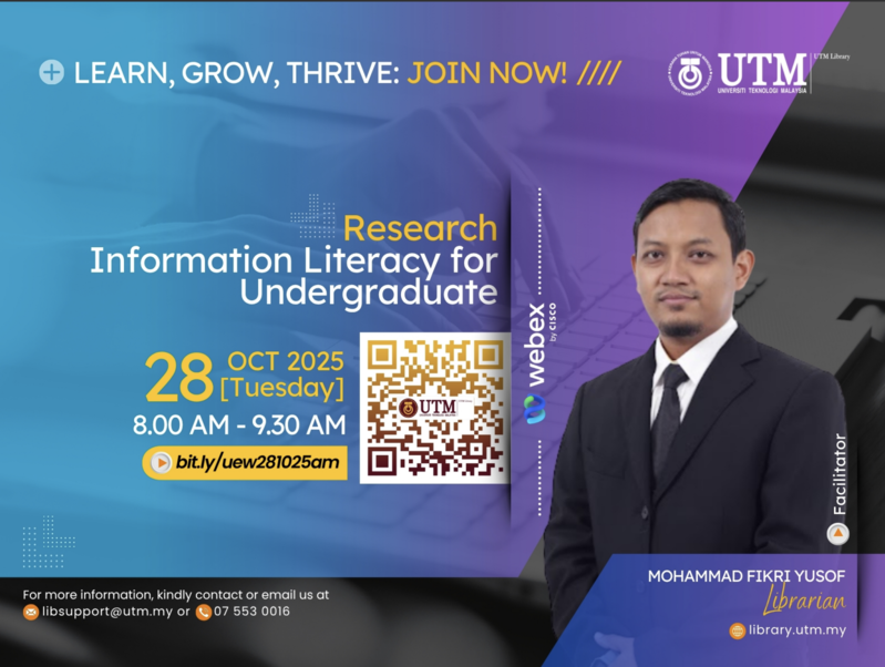 UTM Library will continue expanding its collaborative efforts with faculties and academic centres. Students who wish to further enhance their research abilities are encouraged to join future User Education programs. With continuous guidance and accessible resources, UTM Library remains a strong partner in helping students learn, grow, and thrive.