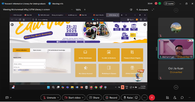 October 2025 marked one of the most impactful months for UTM Library’s User Education initiatives. In close collaboration with the UTM Language Academy, the Library conducted seven Research Information Literacy classes, successfully engaging an impressive 2,637 students. This large-scale effort reflects UTM’s commitment to strengthening academic readiness and supporting students with essential research competencies.