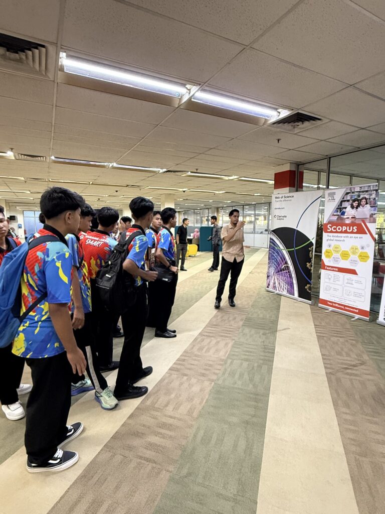 Selain lawatan fizikal, para pelajar turut diberi penerangan ringkas mengenai perkhidmatan perpustakaan, termasuk kemudahan peminjaman bahan, akses kepada sumber elektronik, serta sokongan penyelidikan yang ditawarkan kepada warga universiti. Pendedahan ini diharap dapat membuka minda pelajar tentang kepentingan literasi maklumat dan kemahiran mencari sumber rujukan yang sahih dalam menyokong proses pembelajaran mereka.